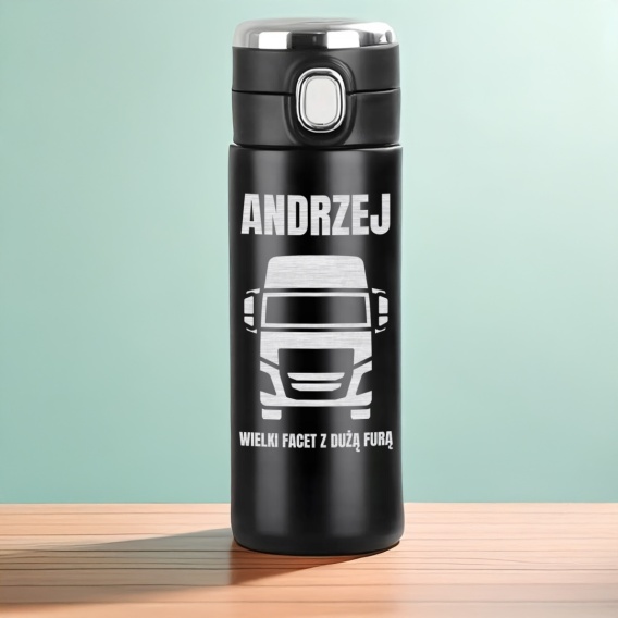 • Termos z grafiką TIRA „Wielki facet z dużą furą” – prezent dla kierowcy na święta lub urodziny